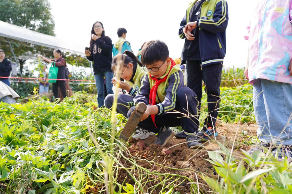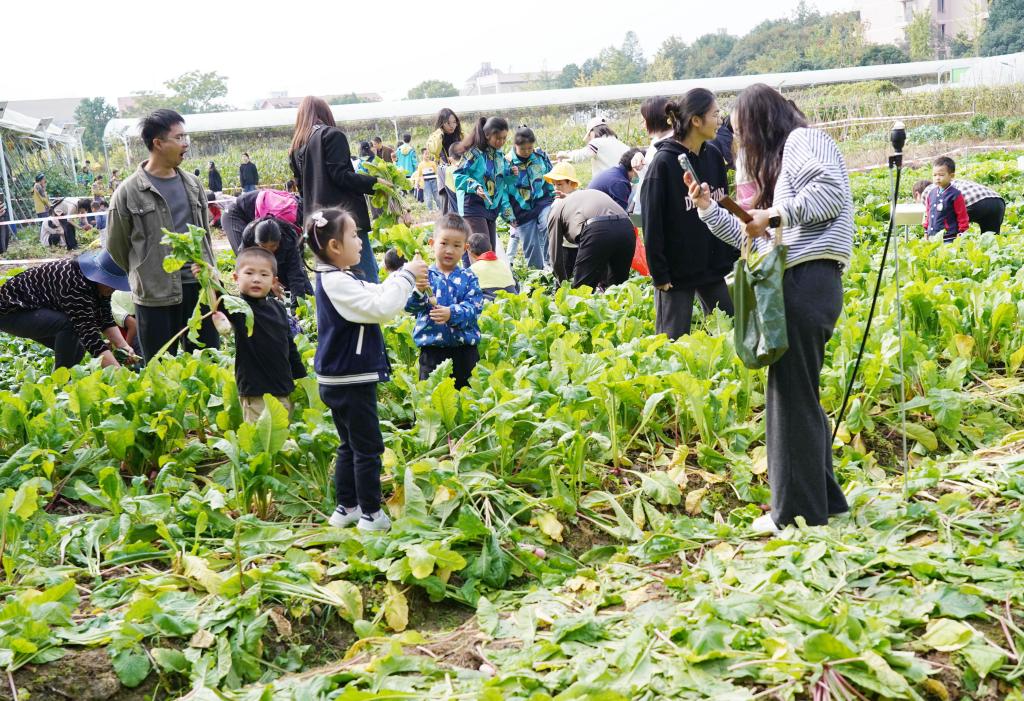 在浙江农林大学的农作园里,一堂别样的丰收节生态课程正在上演:挖番薯大赛、拔萝卜比赛、摘玉米体验……这里的所有蔬菜都由师生们亲手种植,全部都是不施化肥的有机蔬菜,全校师生和周边的中小学生亲手采收,感受大自然的馈赠、享受丰收的喜悦,体验劳动的快乐和价值。