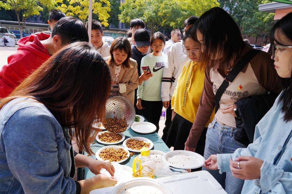 在昆虫节活动现场,蝴蝶、蜻蜓、竹节虫等精美的昆虫标本吸引了师生的关注,用金蝉、蚕虫、玉米虫等昆虫制作的昆虫美食,更是吸引了不少师生前来“尝鲜”。该校现代农学院的生态育人优秀教师王吉锐说,昆虫外形艳丽,有的还富含丰富的蛋白质,不少由昆虫制作的美食不仅营养丰富,而且原生态、味道鲜美,已成为餐桌美食。