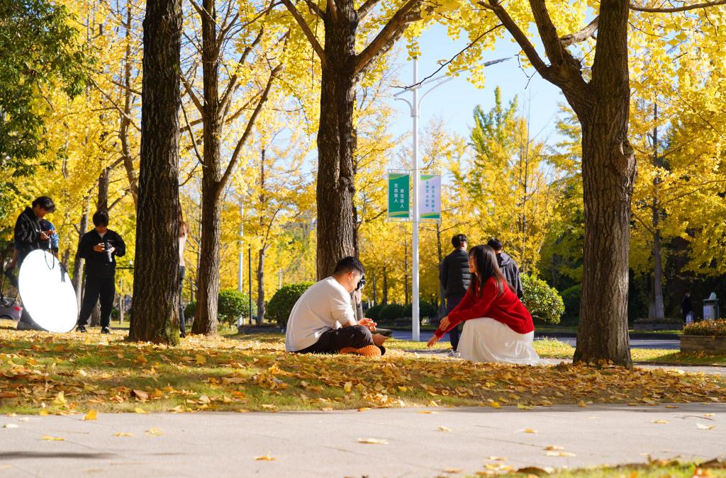 不少游客被这美丽的景色吸引,纷纷前来观赏,在这满地金黄之上漫步闲聊、拍照留念,感受初冬的气息。“农林大的银杏是出了名的好看,今天的天气很好,我们就过来玩一玩,拍拍照片,非常开心。”游客梁燕飞说,她和朋友几乎每年都会来,所以一有时间,他们就迫不及待地来打卡了。