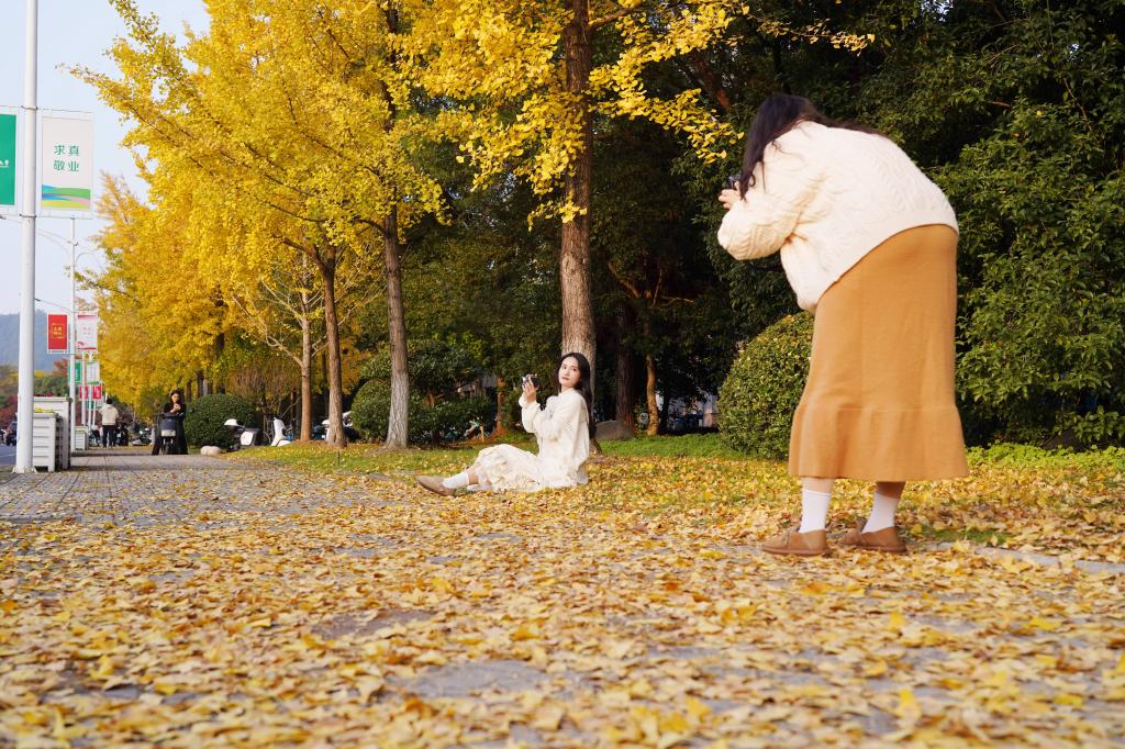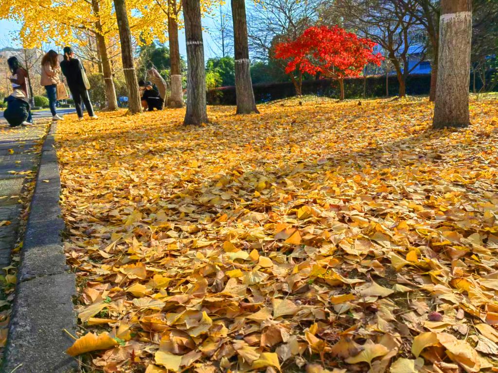 落英缤纷,美丽的秋景总是惹人留恋。在浙江农林大学,有一条银杏大道,每年从11月份开始一片金黄,美不胜收,师生们不出校园就可以欣赏到金黄的银杏、绝美的秋景,成为校园绝佳的“网红打卡点”。