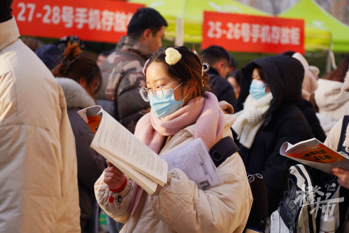 一位考生妈妈从城西赶到城东,送女儿来考试,手里提着保温袋——她怕天气冷,中饭凉掉,所以专门带了用来给中午买来的饭菜保温。