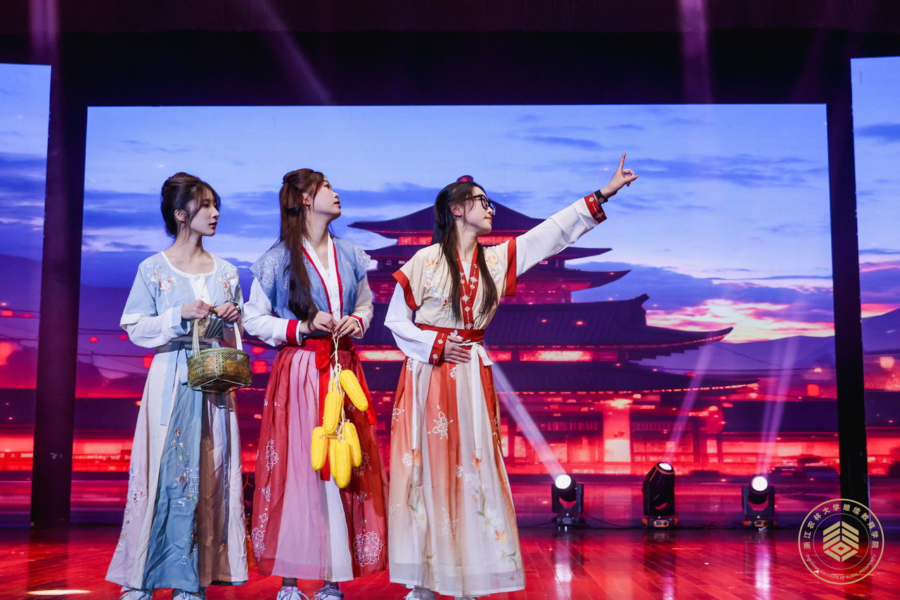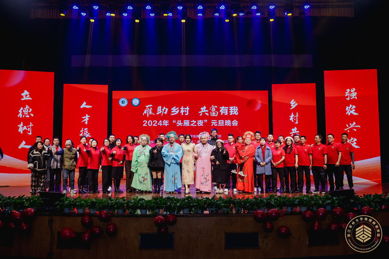 演员手中的“道具”,是来自田间地头的新鲜辣椒、芋艿、萝卜;抽奖环节的海鸭蛋、蜜桔、香薯、水果玉米,都是来自农村的原生态产品;舞台上的节目、分享的故事,是学员们真实的农业创业经历;参与演出的演员,大都是来自浙江各地的乡村产业振兴带头人……12月20日晚,由浙江农林大学继续教育学院、共富学院400名“头雁”众筹举办的头雁之夜元旦晚会,在浙江农林大学活动中心影剧院精彩开场。