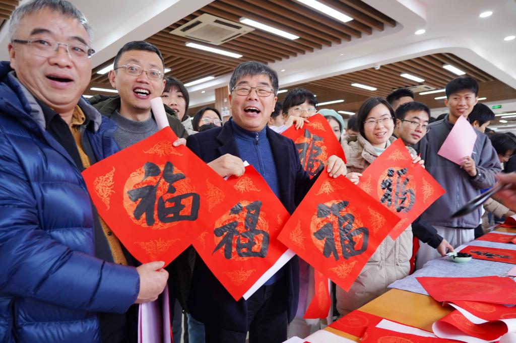 1月15日,浙江农林大学书法协会的师生们,正在给陆续放寒假回家的老师同学书写“福”字、春联等,让大家能够开开心心带着学校的“福”气返乡过年。
