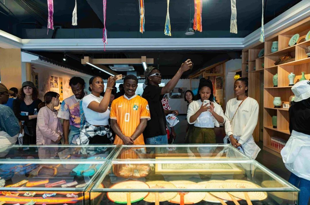 走进非遗馆,竹编画、脸谱、刺绣、黑陶等非遗项目琳琅满目,留学生穿梭于各个非遗展示区,近距离感受非遗作品的独特魅力,并深深折服于非遗传承人的精湛技艺。