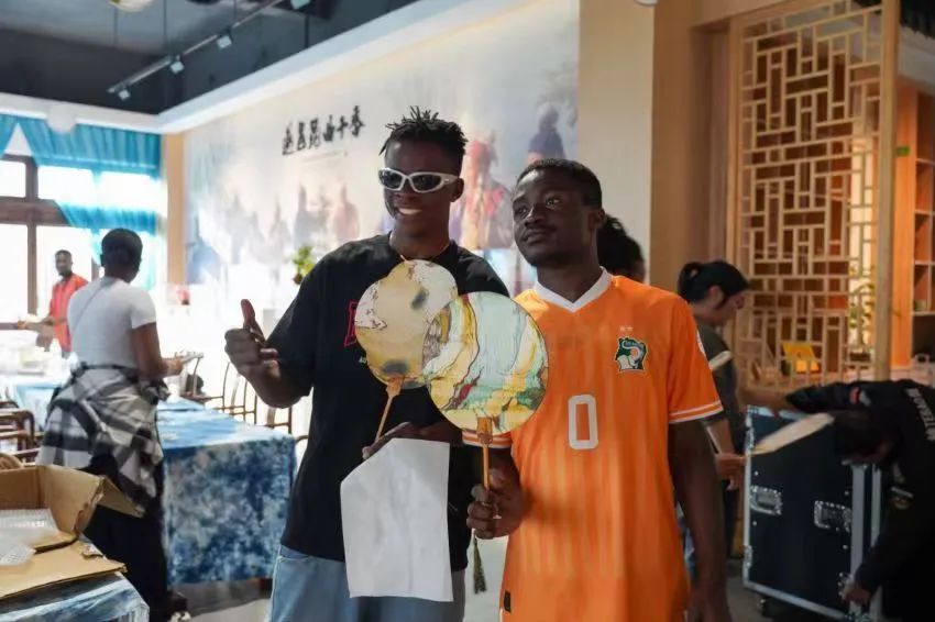 留学生们还体验了漂流漆纸扇子,指尖飞舞、扇面轻旋……绘制时,色彩在扇面“舞动”留下的痕迹,在这一刻被永恒捕捉,凝固于扇面之上,成为一道穿越时光的美景,待漆干透,一把独一无二的漆扇就完成了。