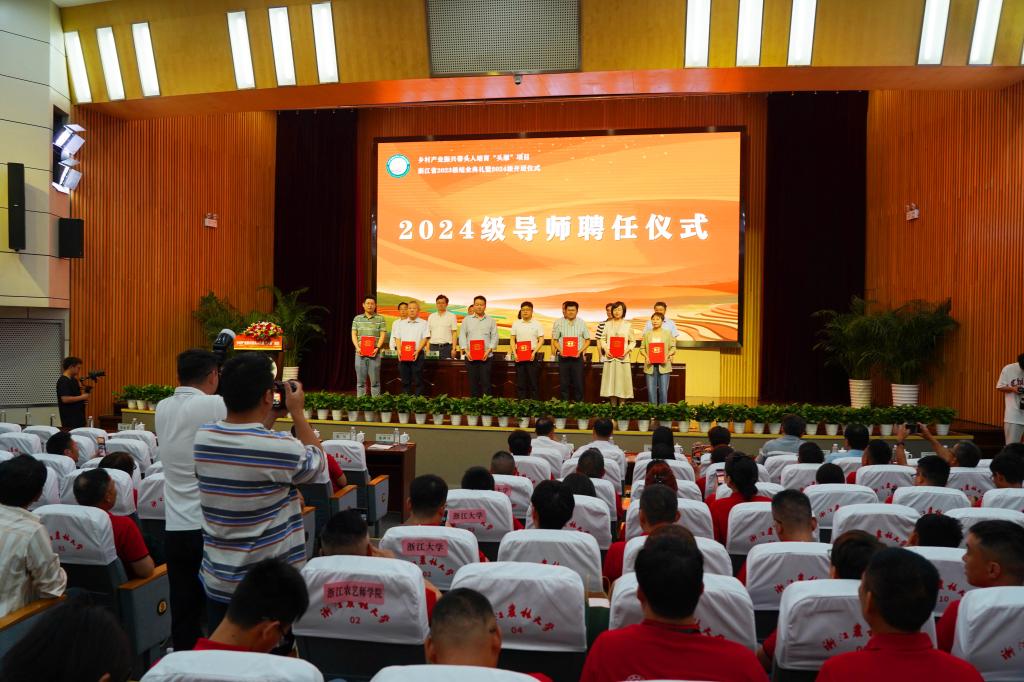 在当天的仪式上,来自全省各地的新一批200名2024级“新雁”在浙江农林大学开启学习生涯。他们将和上一届“头雁”一样,进行为期一年的学习提升。根据教学计划,学校将聘请校内外专家学者、行业顶尖人才担任他们的专业导师和创业导师,针对带头人从事的产业类型和自身需求,为带头人配备专业跟踪指导教师,为其提供扩大视野、更新知识的平台机会,增强创新创业创造能力。学校还将推进学历与非学历链接,全方位助力“头雁”发展。