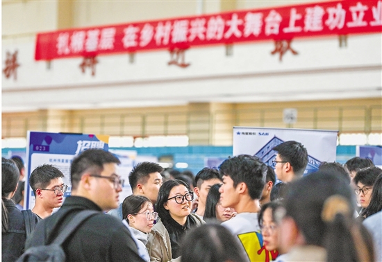 校园门口的迎新点刚刚撤下,招聘会的大海报已经摆开……10月10日下午,我省2025届高校毕业生首场秋季招聘会在浙江农林大学举行,共有3000多名学生参与招聘。