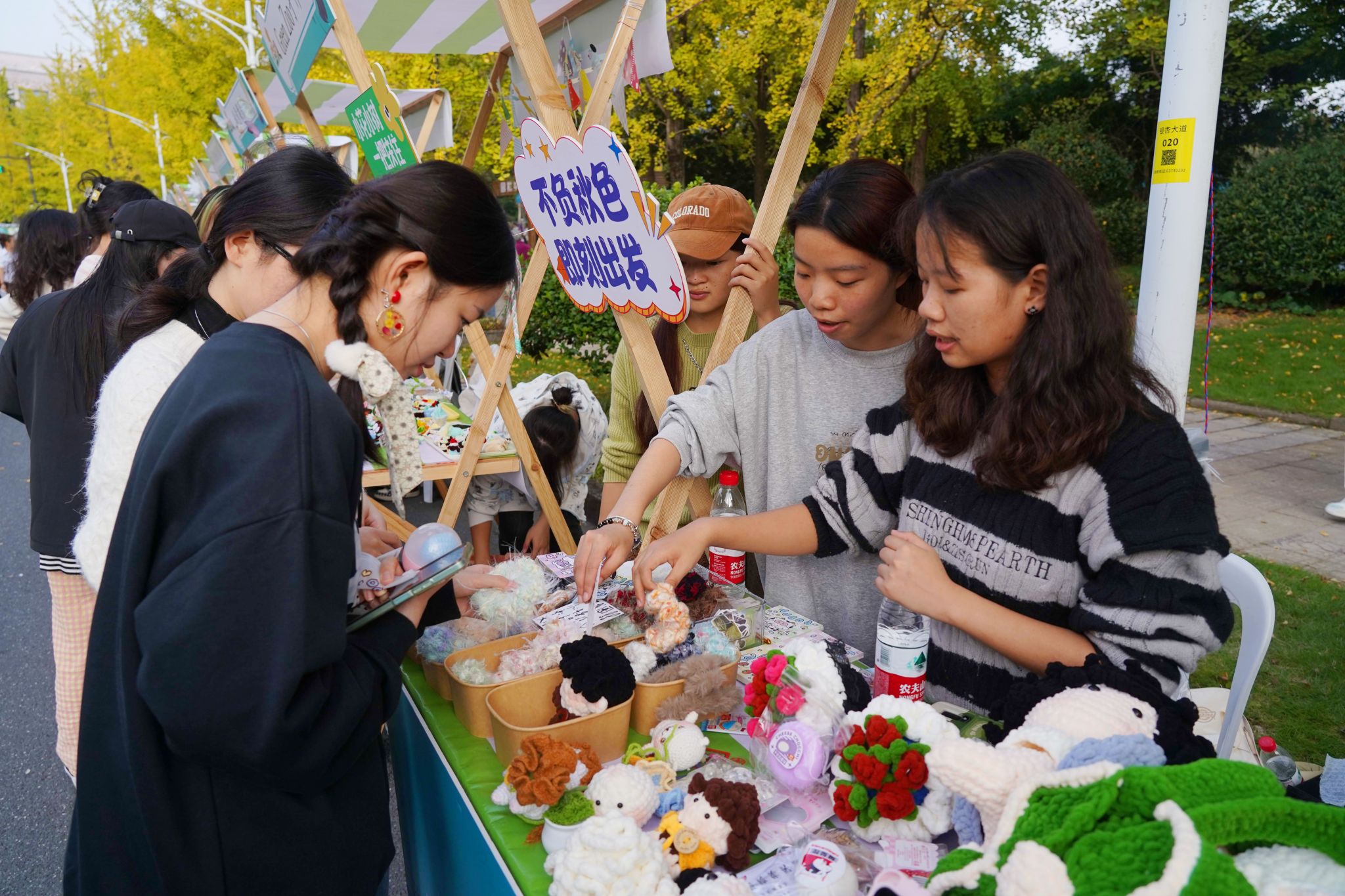 11月9日至10日,浙江农林大学举行生态嘉年华活动。其间,开展了生态市集、生态巡游、生态研学、生态闪拍等生态主题活动,数万名师生、市民在生态体验中根植生态理念。图为生态市集现场。