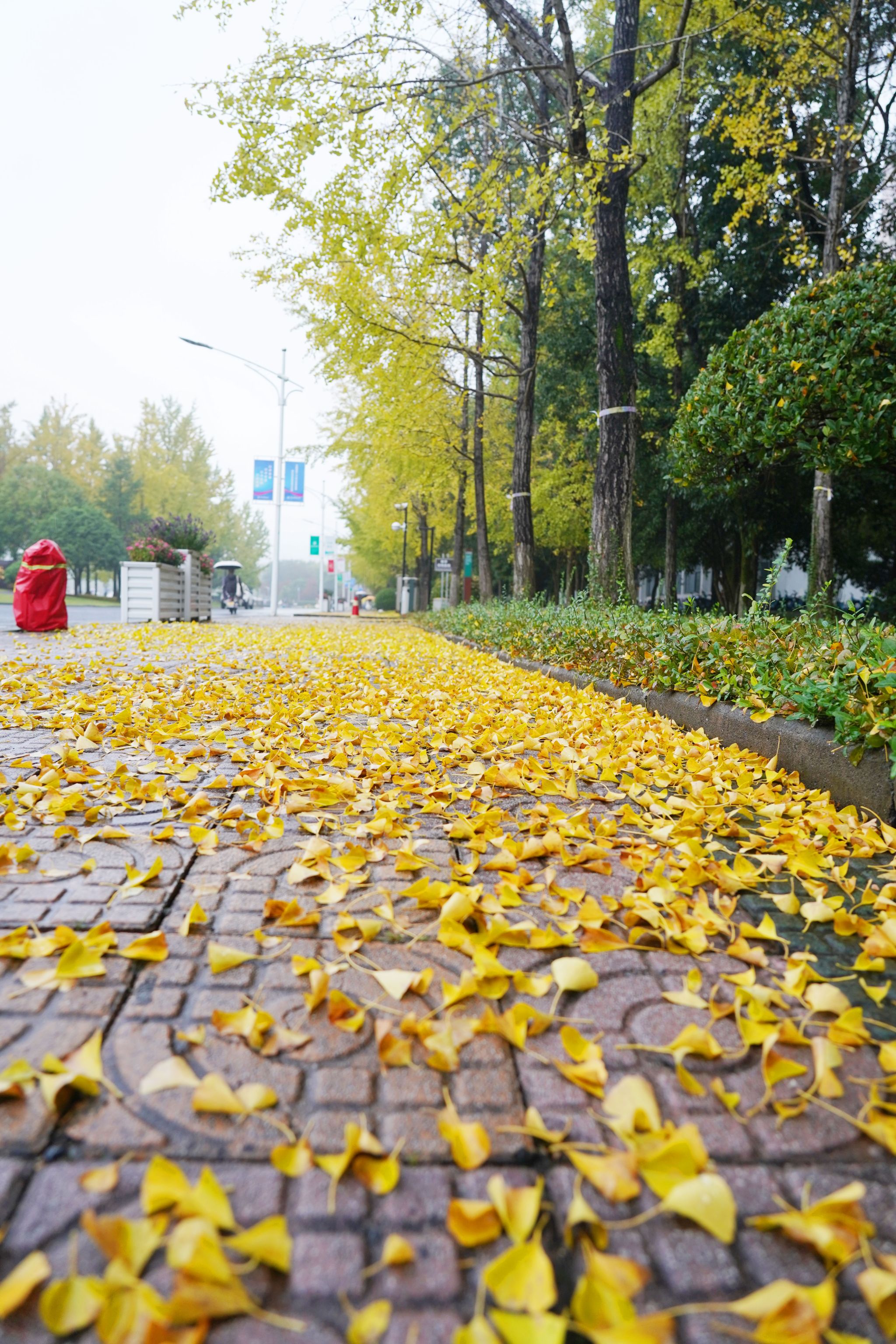 近日,随着阵阵冷空气南下,不少街道都开始铺上了银杏“地毯”,金灿灿的,别有一番晚秋景致。