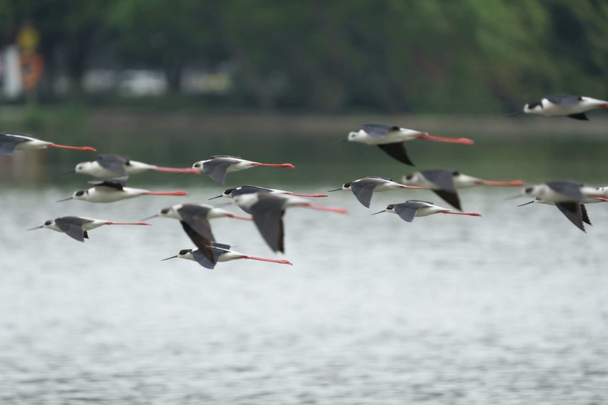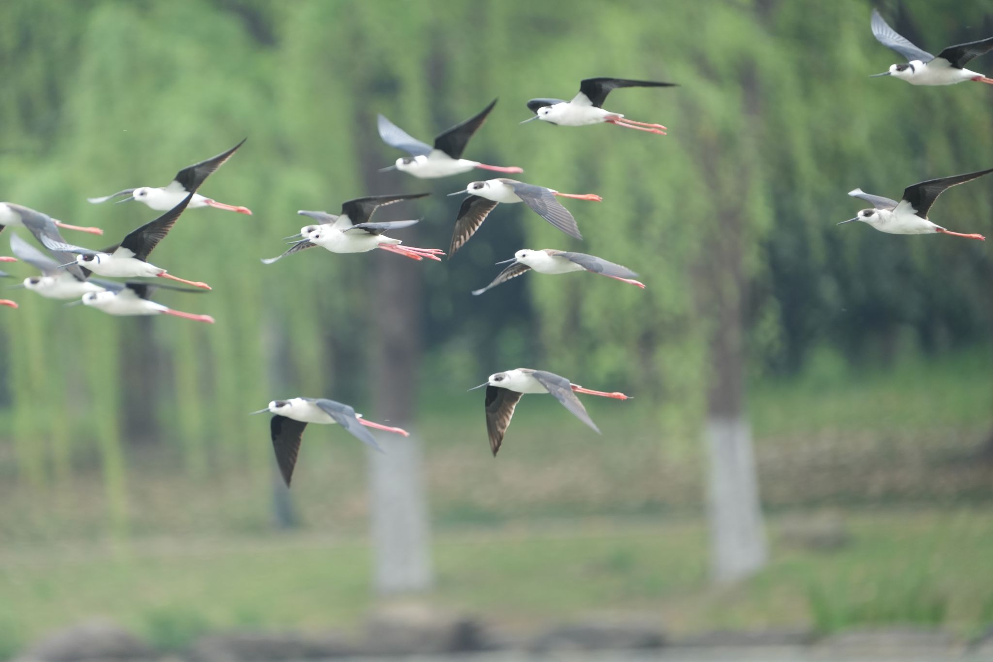 浙江农林大学植物园办公室教师叶喜阳回忆:“4 月 9 日清晨,我在东湖边发现了这群黑翅长脚鹬,大概有近 20 只,当时它们在浅水区觅食,偶尔在湖面飞翔。不过第二天再去,它们就已经飞走了。”