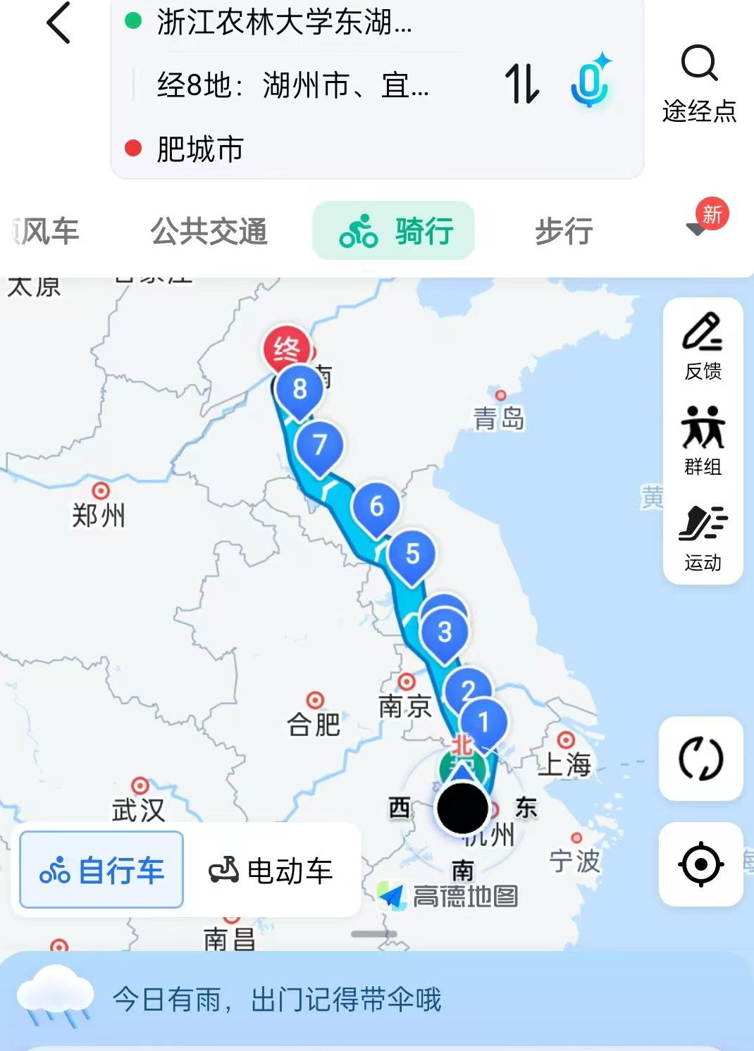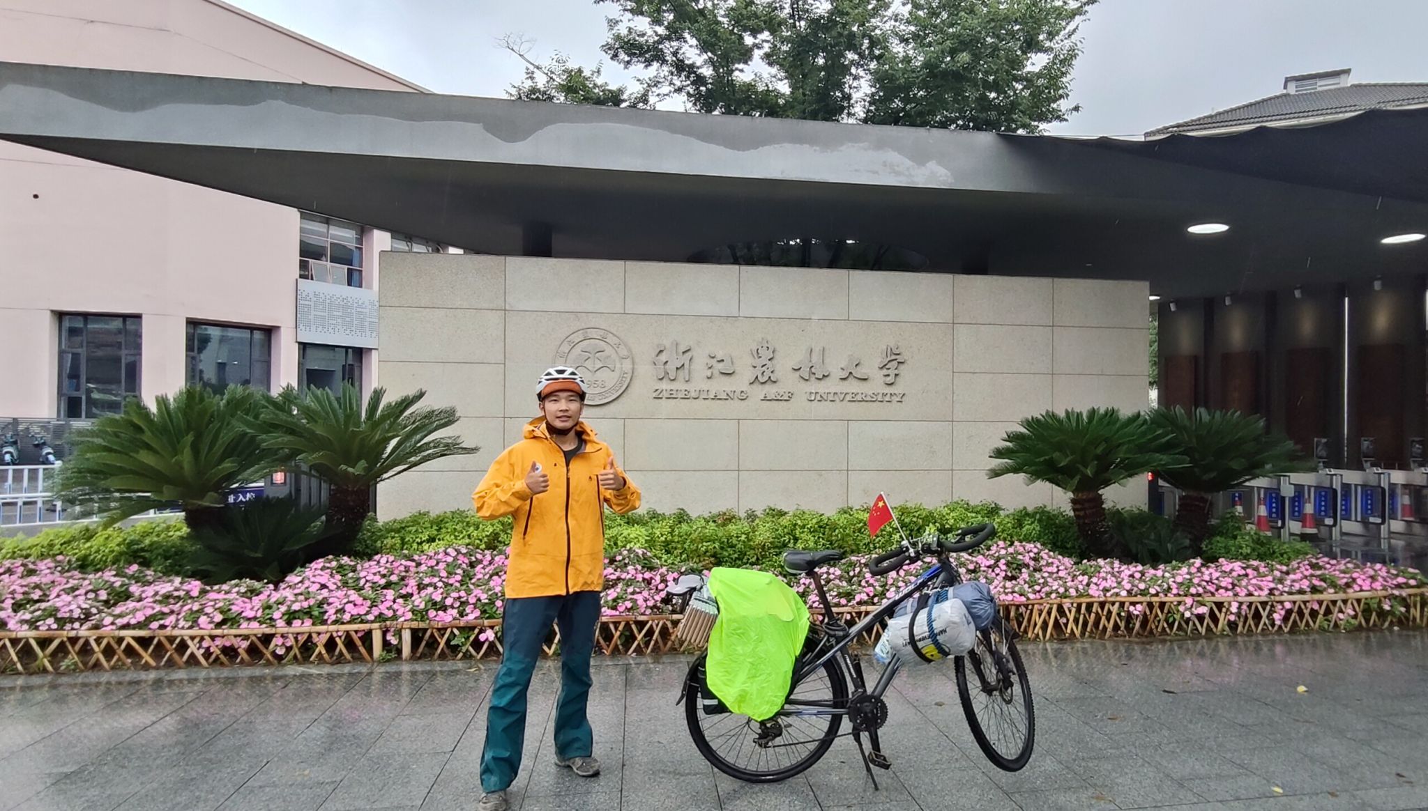 半个月前,即将完成大一期末考试的陈子雍忽然有了个念头:以前在家读高中时,因为学校离家近,经常骑车回家。现在自己在浙江农林大学上学,从学校所在的浙江省杭州市临安区,到自己老家山东省泰安市肥城,有900多公里,是否也能骑车回家?
