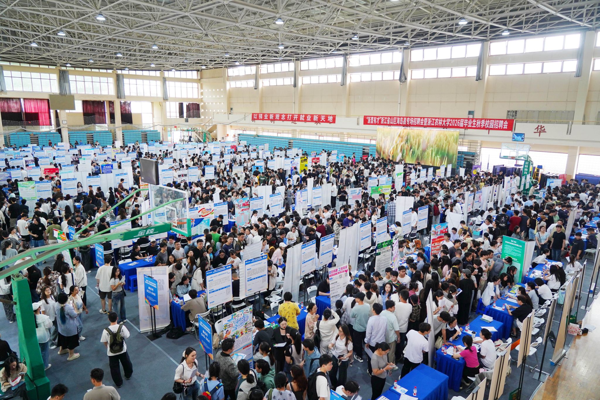 10月16日,浙江省2026届高校毕业生首场秋季招聘会——“浙里有才”浙江省山区海岛县专场招聘会在浙江农林大学举行。本次招聘会共吸引了227家企业,推出各类岗位568个,需求人数超5500人,涉及农学、生物育种、植物保护、生物制药、园艺科学等各个领域。招聘会线上吸引了60000多人次关注,现场共吸引5000多名本硕博毕业生前来咨询求职、投递简历。