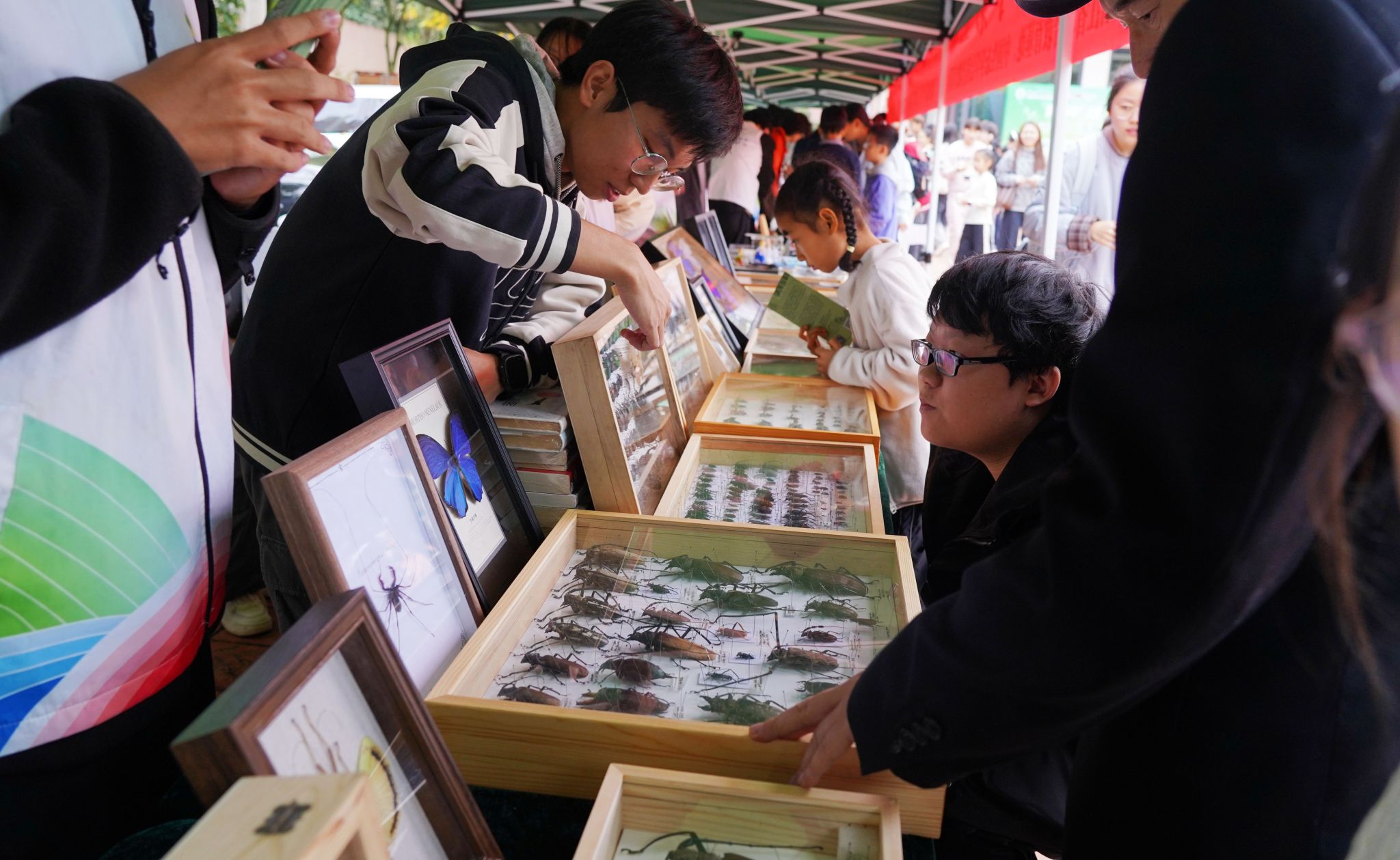 11月9日,浙江农林大学举办第五届昆虫文化节。其间,设有昆虫美食、昆虫标本及工艺作品、昆虫科研成果等展区,开展昆虫文化知识问答互动等活动。图为昆虫文化节现场。