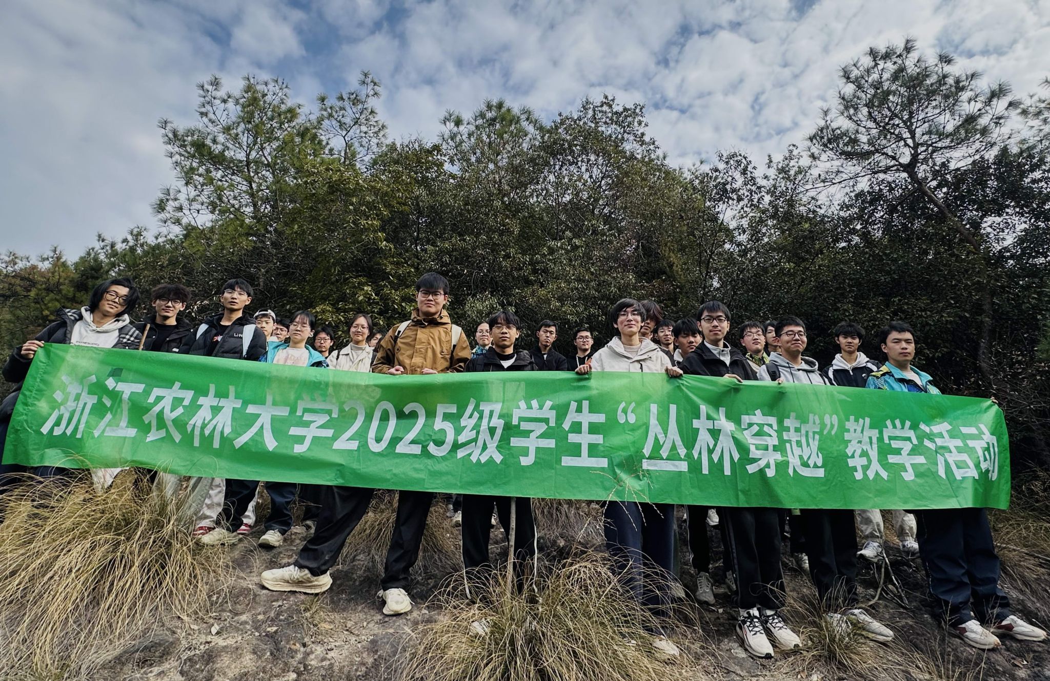 浙江农林大学东湖校区后山的综合实践基地总占地面积近1000亩,是学校新近租赁的山林,目前主要用于师生实习实践和科研工作。2025年,该校体军部充分利用这片山地丛林,组织全体大一学生开展“丛林穿越”教学实践,让学生在与自然的亲密接触中,锤炼强健体魄,在并肩前行中凝聚团队力量,让爱校情怀在山野间悄然扎根。