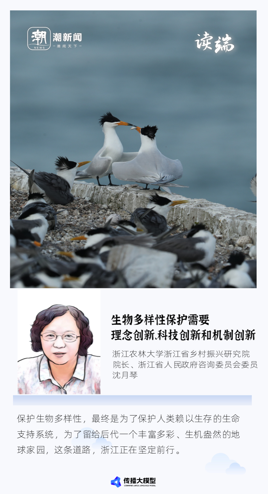 地球现在正处于物种大灭绝的进程中。更揪心的是,灭绝正在滋生灭绝:一个物种的灭绝,会在整个生态系统中引发连锁反应。生物多样性保护,是一场与时间的竞赛。但自然界中各个物种之间、生物与周围环境之间都存在着十分密切的联系,要拯救珍稀濒危物种,不仅要对所涉及物种的野生种群进行重点保护,而且还要保护好它们的栖息地。西溪国家湿地公园、钱江源-百山祖国家公园、下渚湖国家湿地公园等提供了优良的栖息地。同时,有效的生物多样性保护已超越对单个物种的孤立救护,转向对其所处生态系统的整体性维护。中华凤头燕鸥的保护伴随着韭山列岛栖息地的持续修复与智能化监测体系建设;百山祖冷杉的繁育与其所在的森林生态系统保护及真菌多样性研究同步推进;朱鹮的成功引入则直接驱动了下渚湖湿地的系统性生态修复。这种“山水林田湖草沙是生命共同体”的系统思维,实施山水林田湖草沙一体化保护和系统治理,保护的目标不仅是增加某个物种的个体数量,更是修复和维护其赖以生存的生态过程与功能网络,确保了保护措施的可持续性。物种的长期存活依赖于完整的生态过程和健康的栖息地。