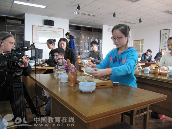 “现在很多美国人都有喝茶的习惯,到中国来摄制《中国茶:东方的万能药》纪录片,就是希望更好地向美国宣传中国的茶文化。”佐治亚州公共电视台副总裁史蒂夫说,浙江农林大学无论在茶文化人才培养还是茶文化学术研究方面,在中国茶文化界都是很有影响的,是一家很错色的国际性的中国茶文化教育与研究机构,所以他们选择和浙江农林大学合作共同拍摄茶文化纪录片,达到对茶文化有关知识的互通有无、资源整合,共同主推茶文化在美国的传统。