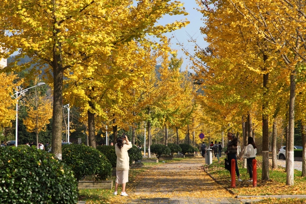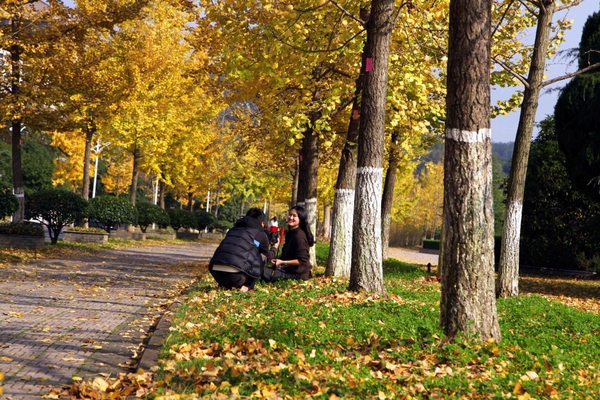 浙农林大的师生们不出校园就能欣赏到如此美丽的秋景,真实幸福。不仅如此,满园的银杏落叶还吸引了周边不少市民的目光,观叶赏秋,摄影留念,好不惬意。
