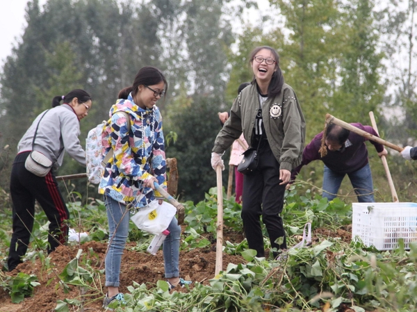 大三学生孔丽丽今年已经是第二次参加秋收劳作。“劳动收获的快乐是别的快乐无法替代的。拿起自己亲手挖出来的番薯,我深深感受到大自然的馈赠。”