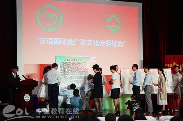中国教育在线浙江站讯 (记者 陈显婷 通讯员 陈胜伟)5月25日上午,我国首个“汉语国际推广茶文化传播基地”在浙江农林大学揭牌。据了解,这是国家汉办在全国建立的第31家汉语国际推广基地,是全国唯一的汉语国际推广茶文化传播基地,也是浙江省唯一的汉语国际推广基地。