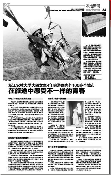 来一次说走就走的旅行,这么任性的事儿,浙江农林大学的大四学生刘雅娴做了4年。她说:“我不想按部就班地学习和生活,我想要看看生活的另一种可能。”这个被同学们称为贴吧“吧花”的女生,在4年里,利用周末和寒暑假时间,先后穷游国内外100多个城市。