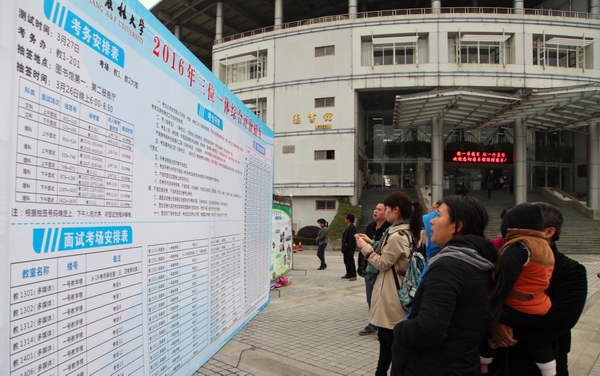 3月27日,浙江农林大学“三位一体”招生综合测试举行。据了解,浙农林“三位一体”招生计划招收225人,实际报名3700多人,今天进入综合测试的考生有1300多名。