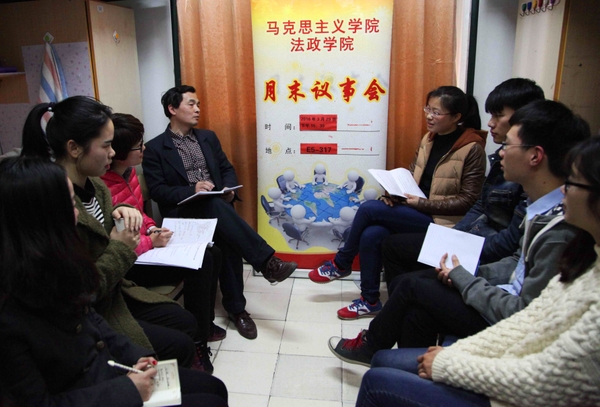 3月29日,浙江农林大学马克思学院、法政学院的领导和师生代表,在该校E5—317学生寝室座谈交流学院最近工作的开展情况,商讨师生反映的各种问题的解决方案。 据介绍,浙江农林大学马克思学院、法政学院的从去年开始实施“月末议事会”制度,将解决学生各种问题的工作会议地点搬到了学生寝室里,并邀请师生代表共同参加商讨,对推动学生工作的开展和问题的解决起到了积极作用。