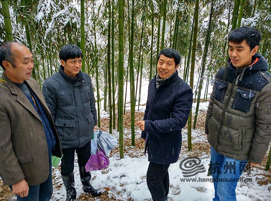 临安市太湖源镇是浙江省雷竹主产区,为帮助当地群众应对雪灾,方伟教授和相关科研人员在竹林里现场指导竹农进行应对雪灾工作。当地不少竹农得知消息后,都赶过来,争先恐后地围着方伟教授请教相关技术问题。