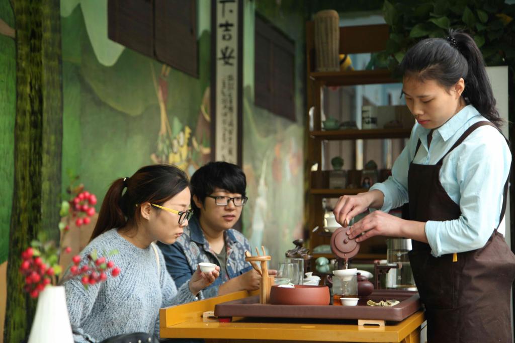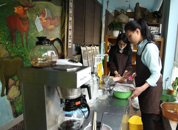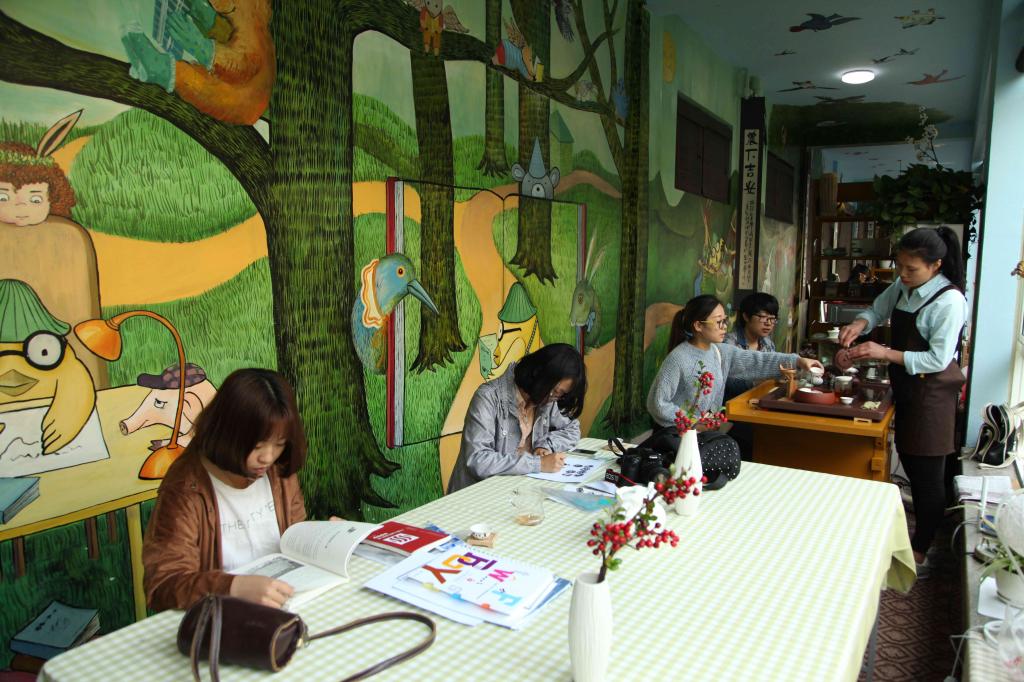 10月12日,浙江农林大学4号学院楼一楼的“笨鸟”文化创意园里,学生们正在阅读、创作、品茶艺、做蛋糕。