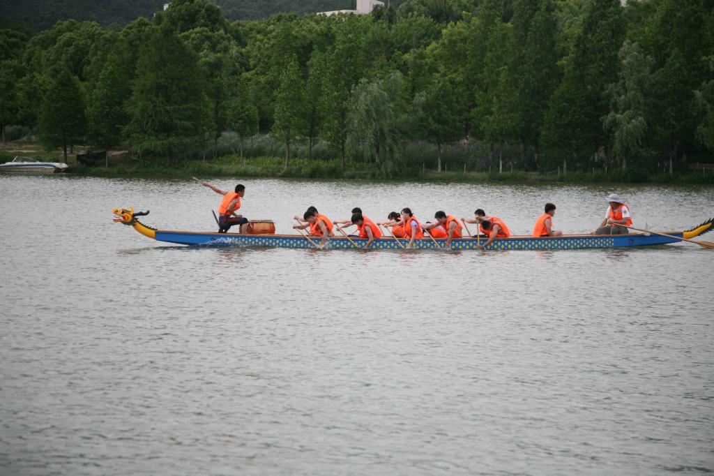 “我们学校从2004年开始成立了户外拓展队,有划船、龙舟、竹筏、露营等活动,现在龙舟队有20多个人,男女比例是3∶1。每年的这个时候,龙舟队的同学们都会在学校的东湖里练习划龙舟,为期一个月左右,之后会去外面参加一些龙舟比赛。训练的时候欢迎大家来参观。”陈老师说。