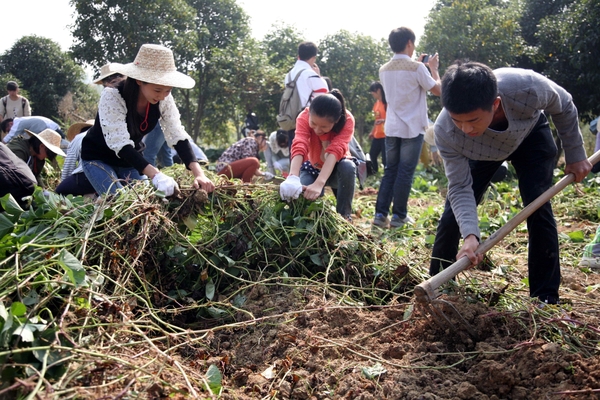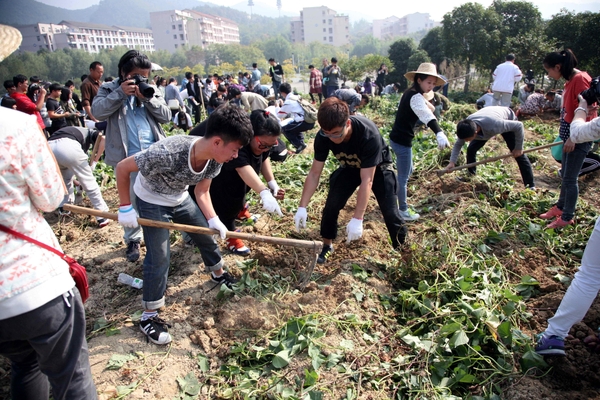 10月23日至10月30日,浙江农林大学举行一系列以劳动为主题的秋收庆典。 该校1000多名学生扛着锄头、挥着镰刀、提着篮子,分别参加了在校园农场里举行的挖番薯、收割水稻、采收大豆玉米等活动,通过参与这一系列秋收劳动,在劳动中传承农耕文化、体味收获的幸福。
