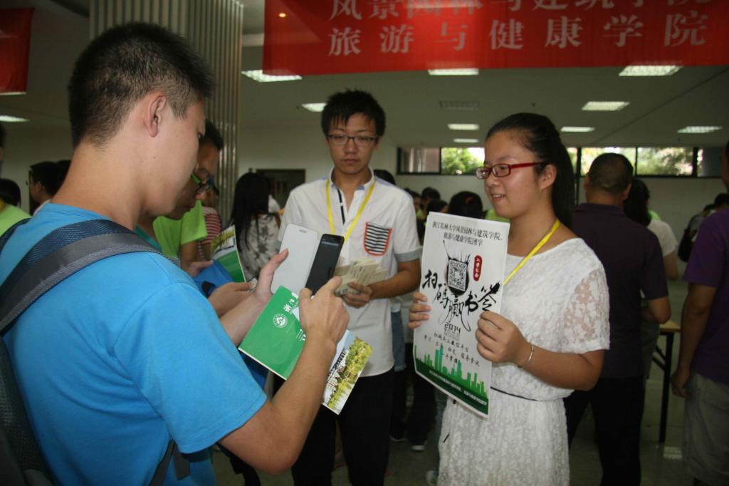 同时,为方便学生报到,浙江农林大学不少学院还推出扫二维码完成报到手续等措施,学生们只要用手机扫一扫二维码,就可以办理新生报到手续。通过扫二维码办理报到手续的学生,还可以获得书签等礼物。