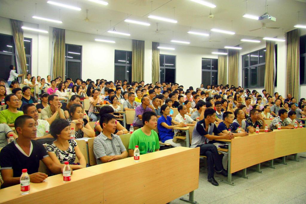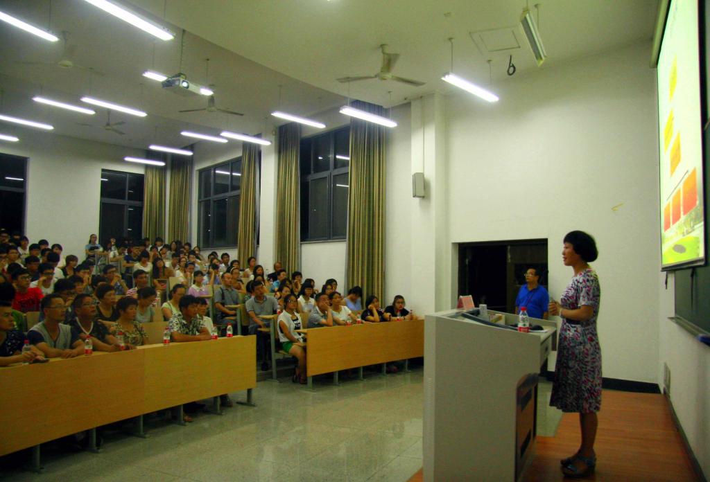 9月1日晚,浙江农林大学集贤学院的新生和父母一起,在该校4号教学楼107教室认真的聆听学院常务副院长林夏珍教授上大学第一课。 这是一节以介绍学校学院情况、引导学生适合大学生活为主要内容的课程,集贤学院专门邀请了新生的家长一起上课,希望学生家长能和学校一起加强学生的培养,引导新生适应大学生活、做好学业规划。