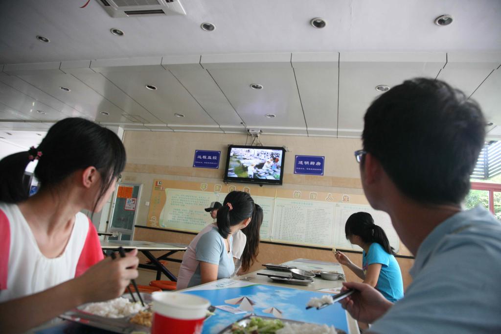 为进一步做好学校食堂的饮食安全,方便师生监督食堂卫生,浙江农林大学日前推出了“透明食堂”。在厨房各个角落安装了32个摄像头,师生在就餐时就可以通过壁挂式监视器同步“监看”厨房的每个角落。