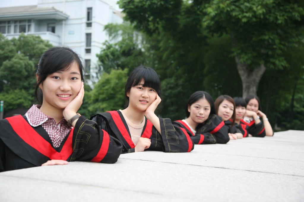 昨天,浙江农林大学的应届毕业生身穿学士服,在校门口拍摄合影庆祝毕业,成为校园里一道靓丽的风景。