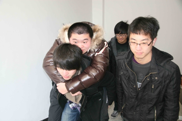 许磊刚跨进“农林大”大门,同学们就主动承担起照顾他的责任。针对许磊的实际困难,大家伙合计,决定每天轮流背许磊上课。许磊所在的会计093班,是个女生多男生少的班级,包括许磊在内全班总共只有6名男生。让许磊欣慰的是,男生们都争着要背许磊,女生们则主动为许磊拿书包、拿材料、拿拐杖。同学们说:“许磊,我们的腿就是你的腿,我们一定会帮助你,和你一起共同完成学业。”
