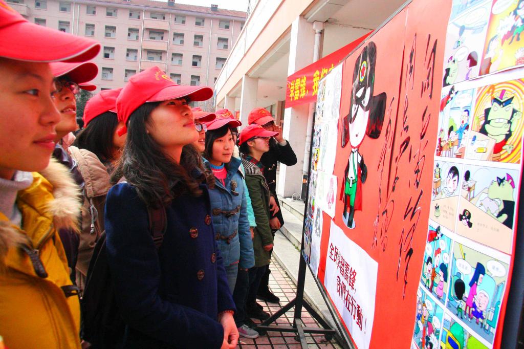 3月3日,浙江农林大学的志愿者在学习了解雷锋事迹,宣誓传承雷锋精神、弘扬时代新风,争做最美大学生。