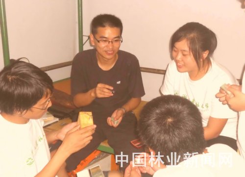 俞以撒在和前往新绛支教的浙江农林大学学生交流。