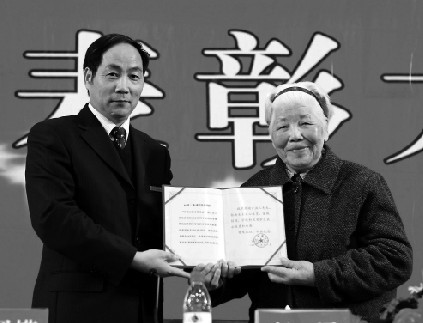 当白发苍苍的杨涌出现在捐赠现场时,引起学生们一阵轰动。她是亓汉三的夫人,今年已经84岁了。陪她一起来的是她的二儿子与三儿子。