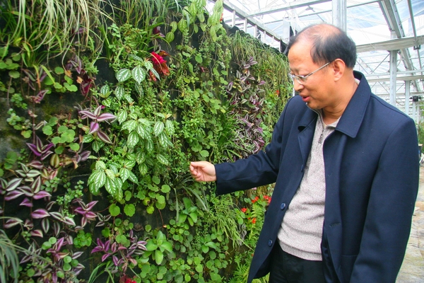 11月16日,浙江农林大学的赖齐贤教授,在研究种在植物幕墙上的各种花草生长情况。植物幕墙系列产品是赖齐贤教授的经过近十年研究的专利成果,运用该技术可以在室内外墙上种植出各种植物,既可以节约土地,又可以绿化室内环境、调节空气,而且该产品绿色环保、节能高效,对于倡导低碳生活也能起到积极作用。