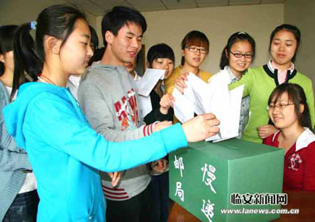 希望把自己写的信邮寄给4年后的自己,或邮寄给10年后睡在自己现在这个床铺上的同学……3日,浙江农林大学团委开通“慢递邮局”,10位大一学生把自己写好的信投进了“慢递邮局”的信箱。