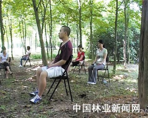 学员们体验森林的静谧。