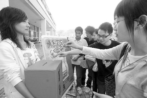 “我们准备开展义卖活动,把我们的一些化妆品、首饰、衣服都拿出来义卖,总之,希望能多凑一些钱捐助给灾区人民。”大二学生章莹和很多同学一起,拿出了他们自己的很多物品,在校园里进行义卖,并将收入全部捐助给红十字会。