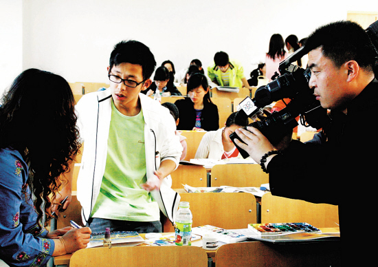 一个听不到声音的大学生竟能熟练地说五种语言,创下了一个不小的奇迹。 上周三,本报《失聪大学生能说五种语言》的报道见报后,人民网、新华网、新浪网等网站纷纷转载,同时也引起了中央电视台的关注。昨天,中央电视台《共同关注》栏目组,专程赶到浙江林学院对左力进行了贴身采访。
