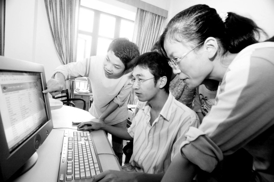 本报讯 11日上午,浙江林学院信息工程学院应届毕业生陈庆芬与同学一起,借用老师办公室的电脑,通过中国研究生招生信息网(http://yz.chsi.com.cn/)进行研究生入学考试网上报名。自10月10日研究生入学考试网上报名工作开始以来,浙江林学院凡是有电脑的图书馆、计算机教室等场所,都挤满了报考研究生的同学。据不完全统计,该校今年3500多名应届毕业生,有近40%同学通过网络报名参加硕士研究生全国统一招生考试。