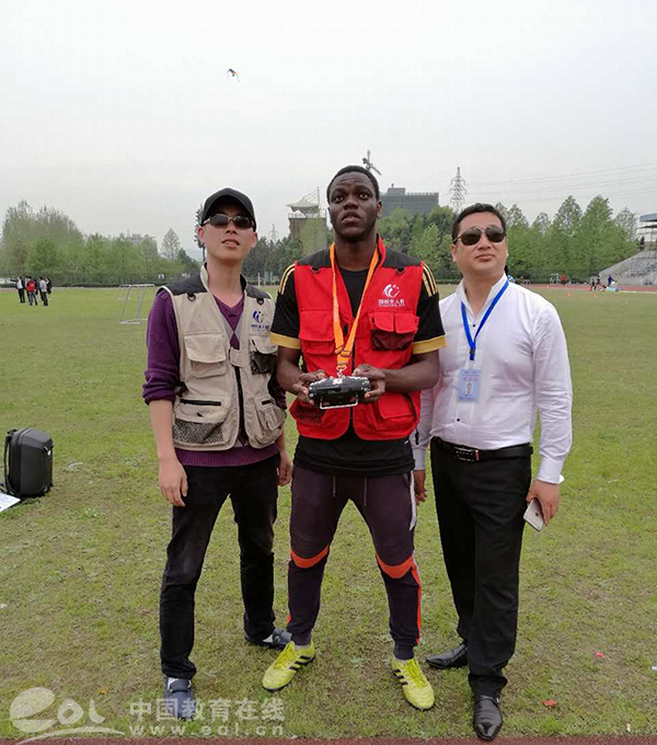 留学生学员在培训无人机驾驶技术