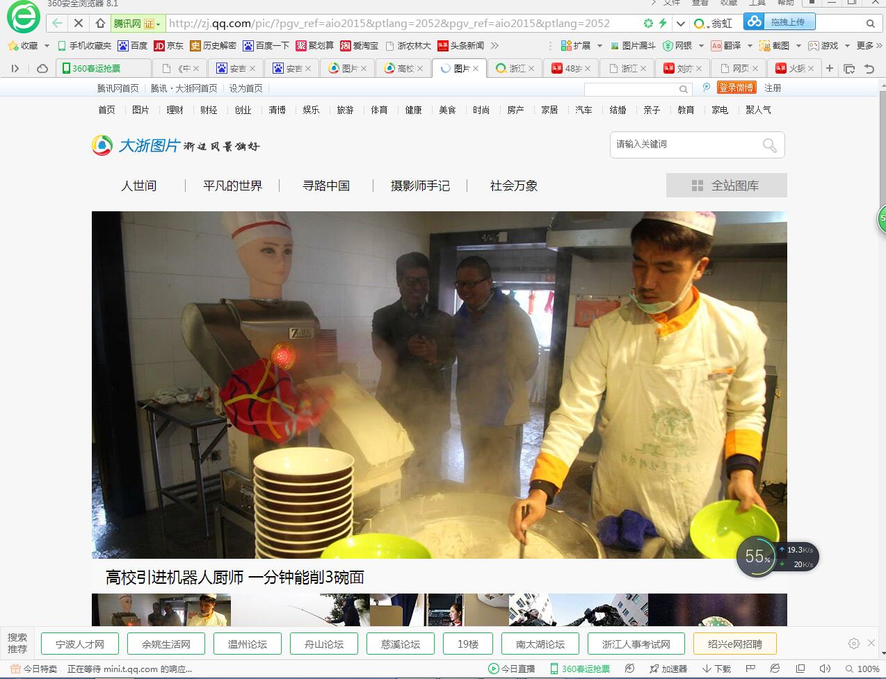 2017年3月16日,浙江农林大学东湖食堂刚刚引进的机器人厨师正在着有条不紊地削着面条,排队等候吃机器人厨师削的面条的学生络绎不绝。