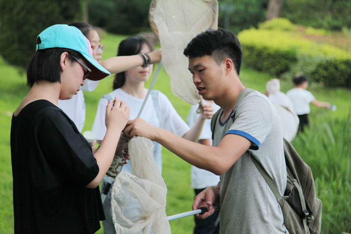 浙江农林大学学生在捕捉昆虫(陈胜伟 摄)