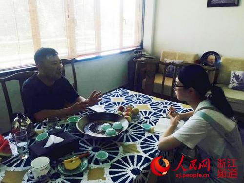浙江农林大学百名学生记者暑期深入12个省(市),采访农户和市民数百人,调研记录全国各地践行“绿水青山就是金山银山”科学论断的生动案例,并形成了10多万字的调研报告集《行走,绿水青山间》,供有关部门参考。图为该校学生正在向农民调研。