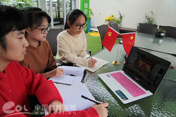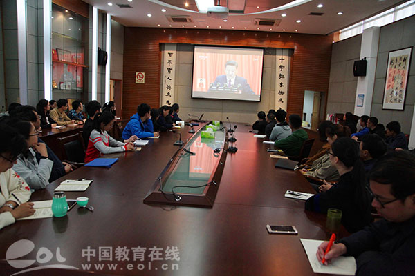 在各个收听收看地点,观看的师生不时响起热烈的掌声。广大师生纷纷表示,新时代中国特色社会主义思想是全党全国人民为实现中华民族伟大复兴而奋斗的行动指南。通过收看实况直播,收看收听习近平总书记作的十九大报告,大家更加坚定了理想信念,将不忘初心,沿着十九大报告指引的方向继续前行。