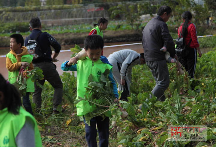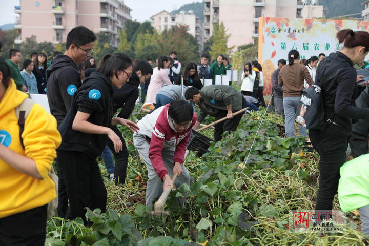 当天,浙江农林大学在校园农作园里举行农业文化节之2017秋收盛典活动。来自不同专业的近千名师生,来到校园农作园里,扛起锄头挖番薯,拿起镰刀割水稻,挽起袖子拔萝卜……来自周边学校的小学生们,也在农学院大哥哥大姐姐的指导下开始学种青菜。